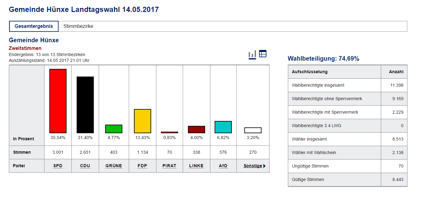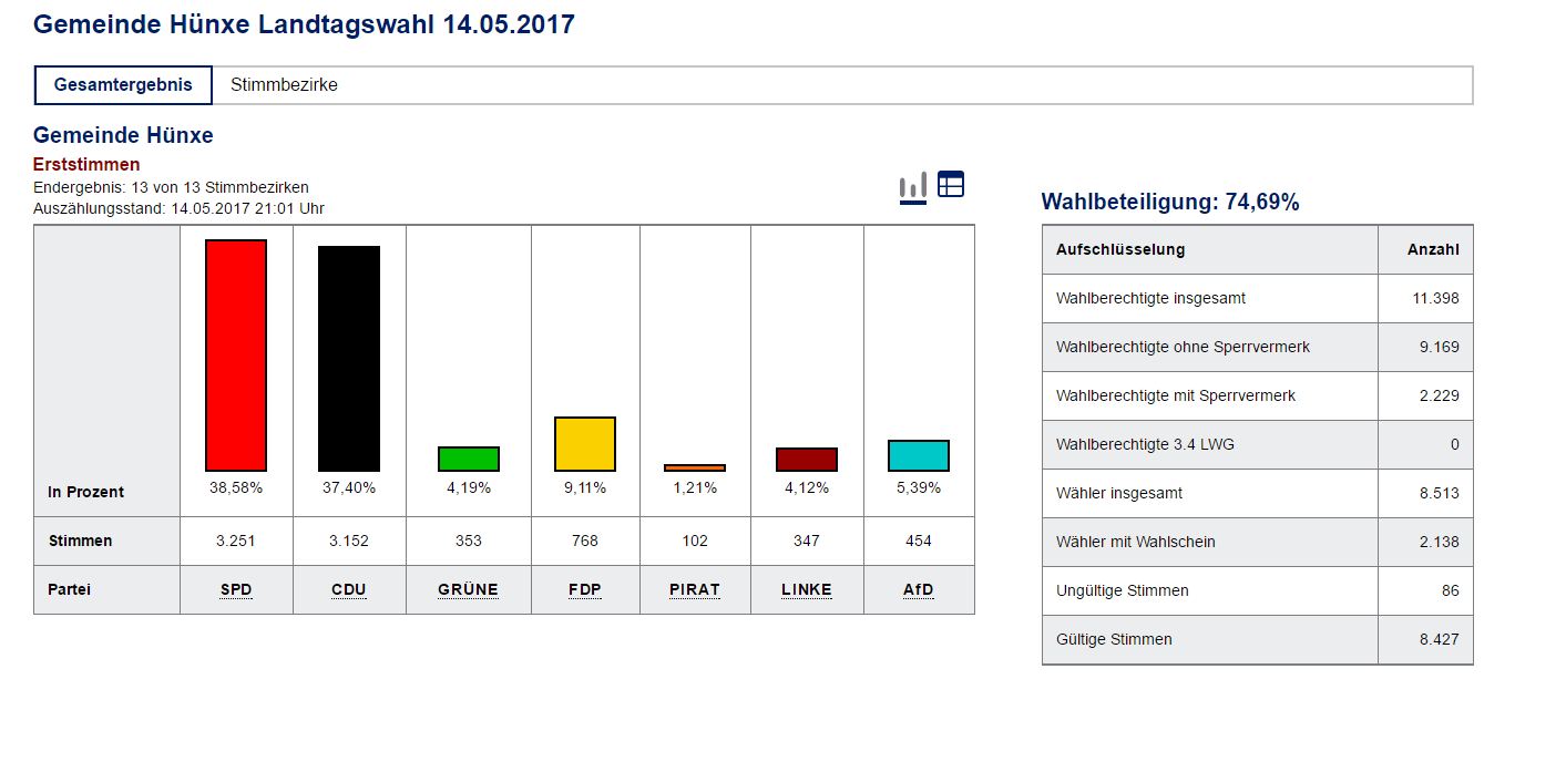 Zum Schluss: in der Gemeinde Hünxe liegt die SPD – entgegen des starken Landestrends – sowohl bei den Erst- als auch bei den Zweitstimmen an vorderster Stelle. Es zeigt, die Art und Weise unseres Wahlkampfes, nämlich weg vom klassischen Infostand mit Sonnenschirm und Stehtisch, hin zu mehr Interaktivität und Dynamik, zu mehr persönlichem und direktem Kontakt zwischen Politik und Bürgern, ist zeitgemäß. Wir machen weiter! (Hierzu hat auch unserer SPD-Kreisvorsitzender René Schneider einige wichtige Erkenntnisse gemacht)